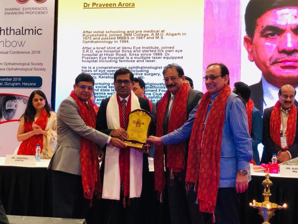 Dr. Arora is the President of the Haryana Ophthalmological Society and co-founder of Shri Hanumant Foundation, Sirsa. He is also the Founder President of the Thalassemia Welfare Society and has served as President and member of the Indian Medical Association (IMA) Sirsa, Lions Club Sirsa, and Shiv Shakti Blood Bank Sirsa. Since 1998, he has organized free eye operation camps on the second Sunday of every month. As President of the Sirsa Fatehabad Ophthalmological Society, Dr. Arora has been a key figure in various community health initiatives. He was the Organizing Chairman of the Annual Conference of the Haryana Ophthalmological Society held in Sirsa on September 20-21, 2019, and the All India Ophthalmological Society Academic and Research Committee Symposium held in Sirsa on September 24, 2023. His contributions have been recognized with numerous awards, including the Lifetime Achievement Award by the Haryana Ophthalmological Society in Gurugram on November 24, 2018, and the Chikitsak Gaurav Award from the Haryana Medical Council by Health Minister Haryana Shri Anil Vij on July 31, 2022.